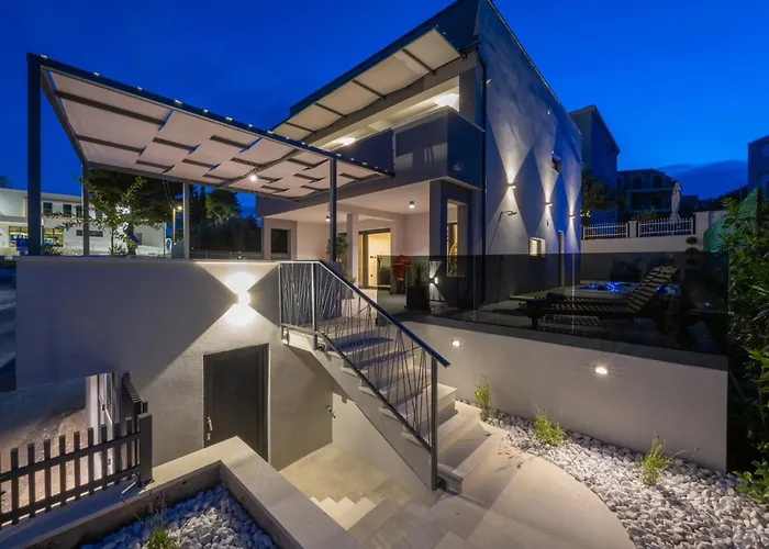 Situada a 3 km del Castillo del Camarlengo, la Villa Roma Sauna&Hydrotherapy Pool Trogir cuenta con un jacuzzi, así como un salón de spa para que los huéspedes se relajen. La villa, que ofrece a los huéspedes una terraza, está situada a unos 10 minutos en coche del Centro Histórico de Trogir.